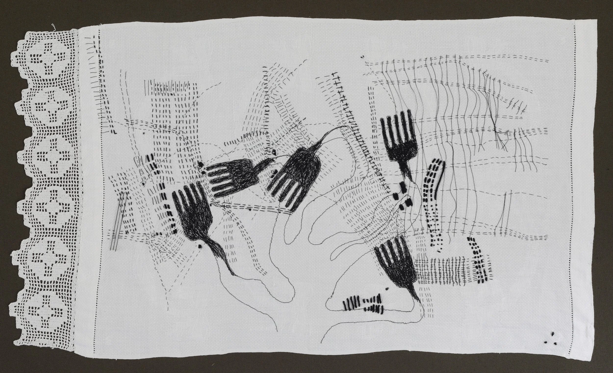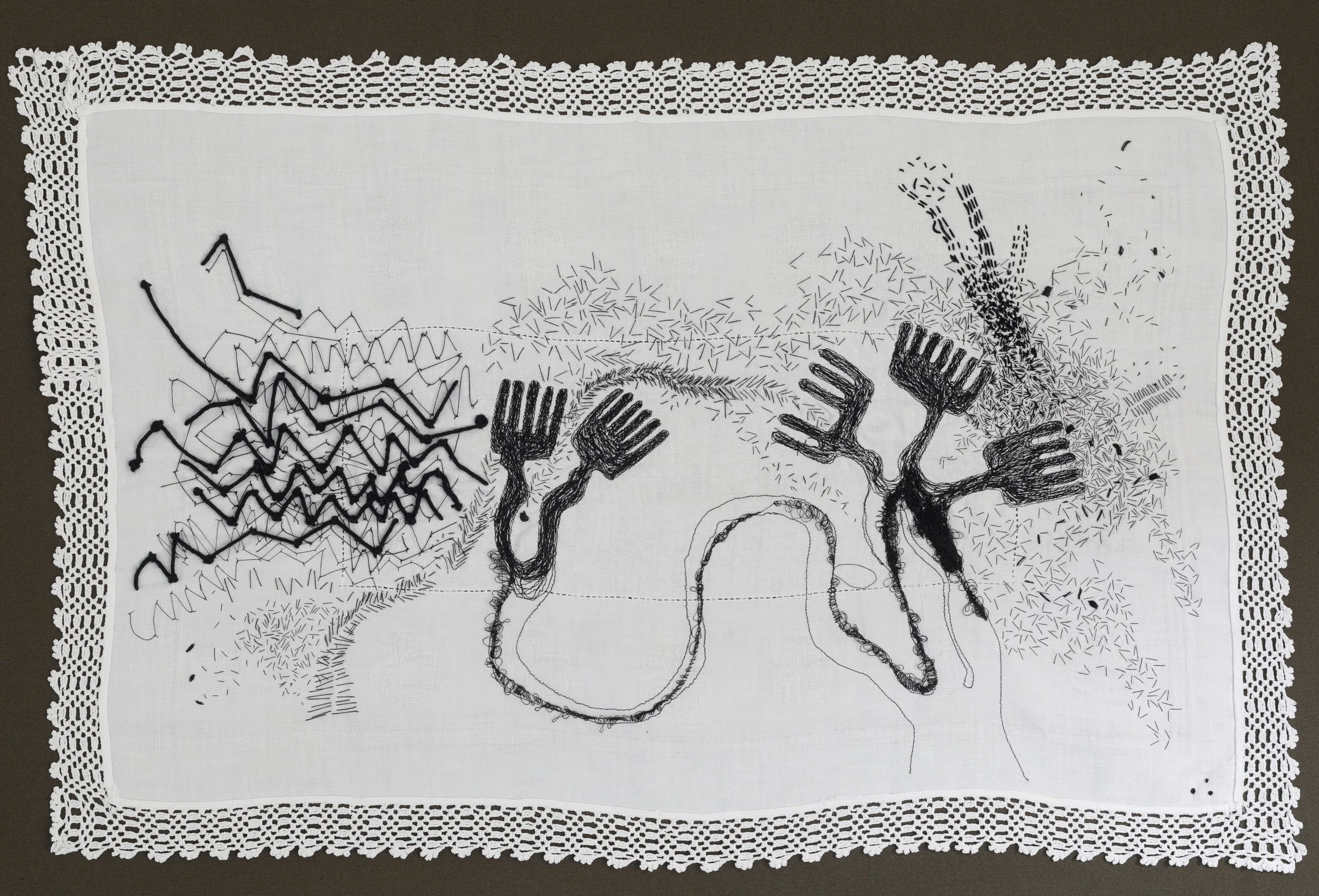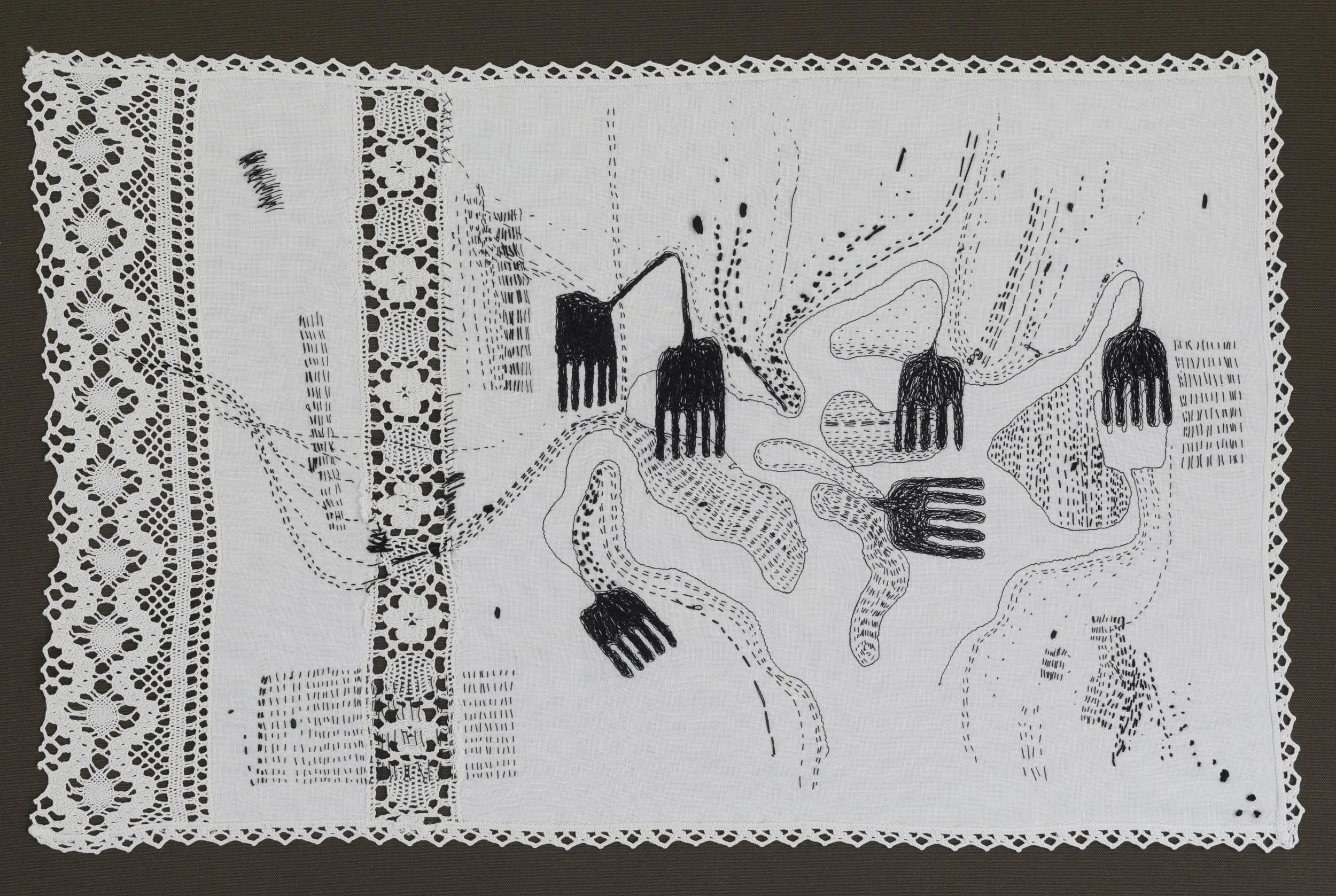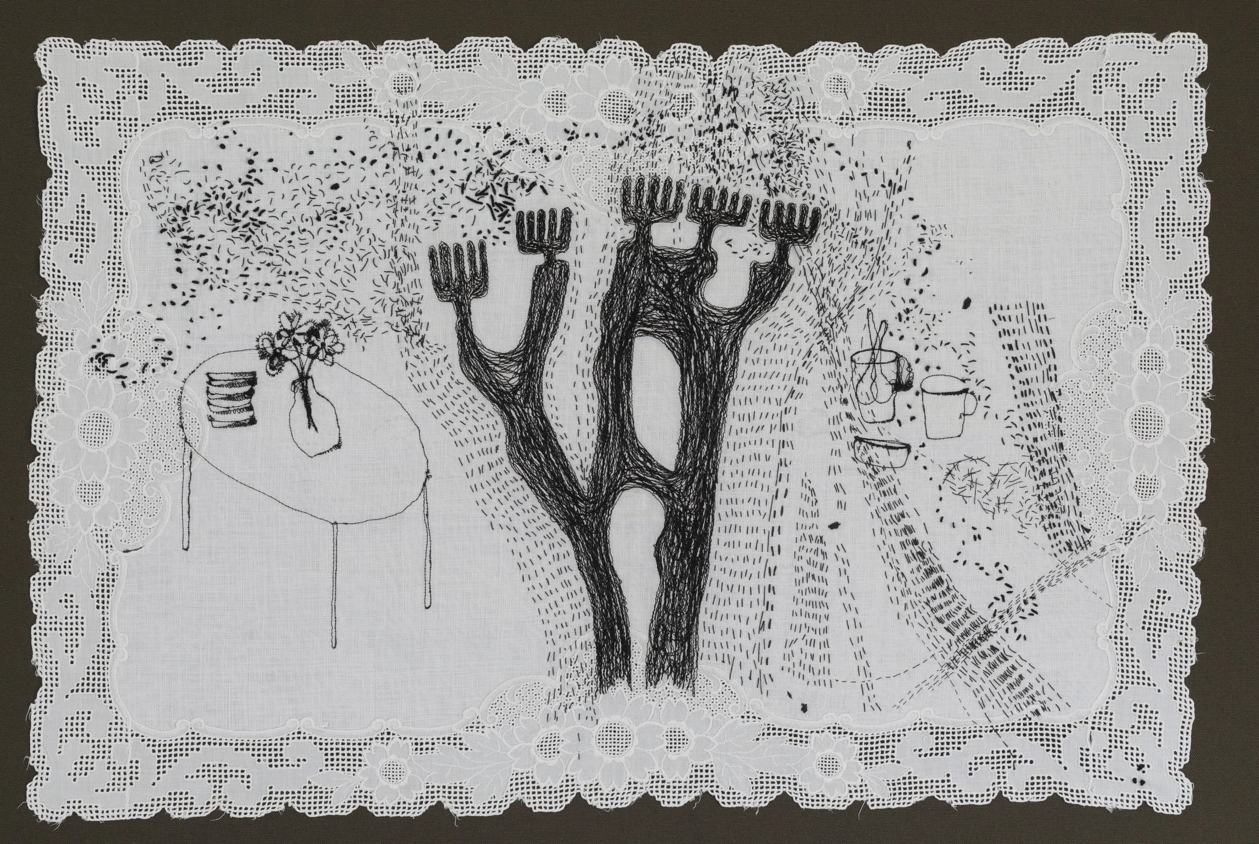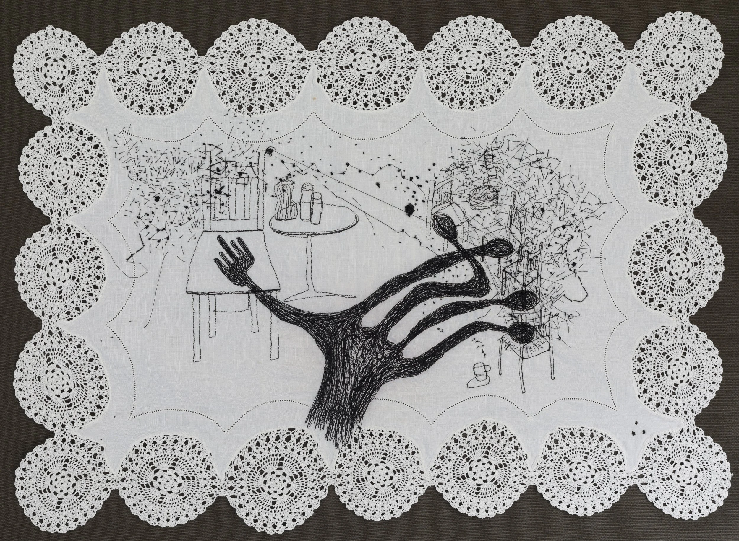 Cristina Jacob’s Table Talks food-table talks artwork explores different dimensions of connection: how we engage, both within ourselves and with one another, and how our interactions - shaped by nature, emotion and memory - leave behind not exact words, but shapes and threads that reappear as dots and lines.